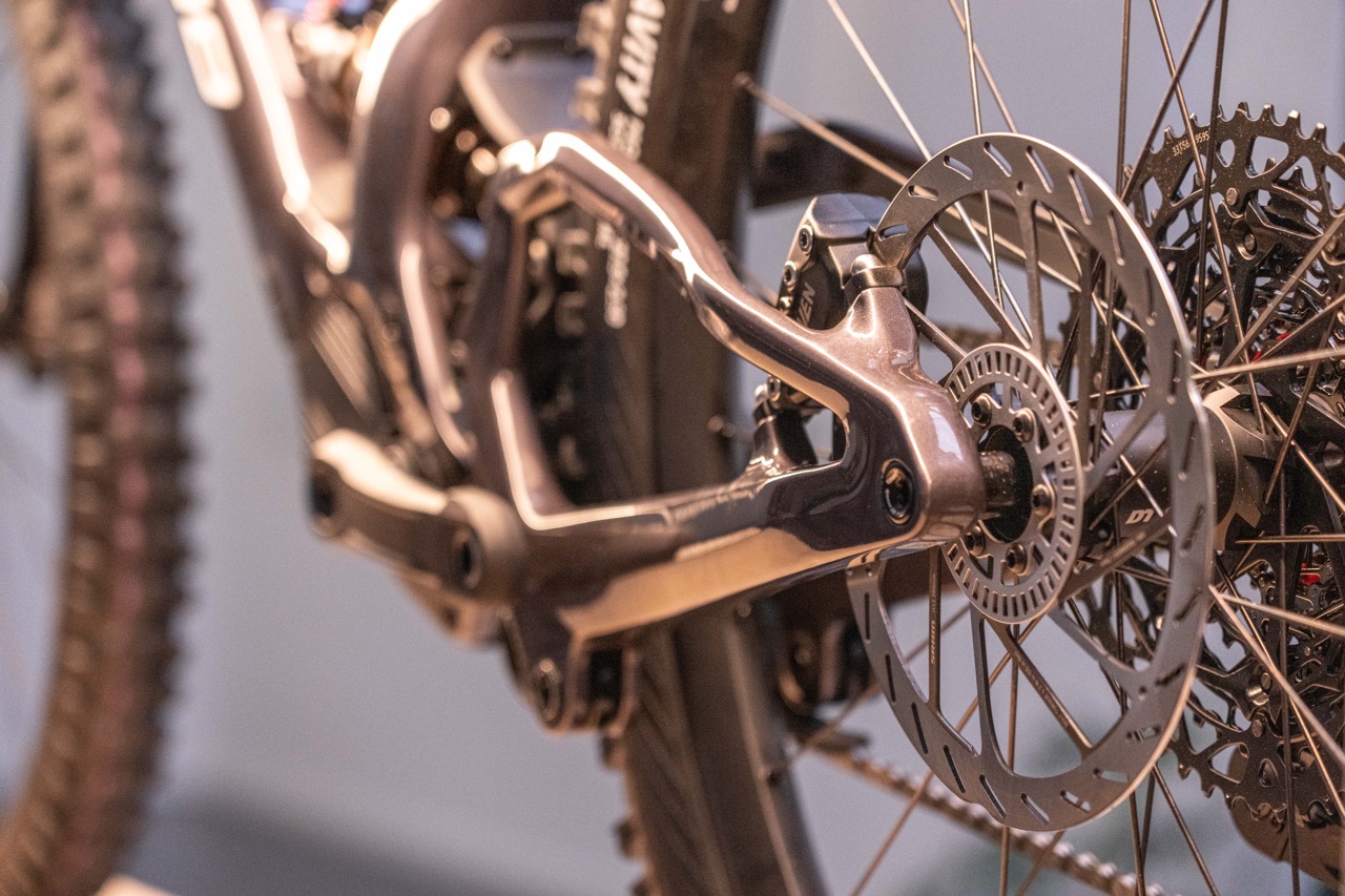 De MITH Race is niet alleen de snelste en lichtste full-powere-MTB die UNNO ooit maakte, maar ook de meest exclusieve. emaakt in Spanje, in kleine series, met een obsessie voor perfectie waar de rest van de industrie stil van wordt. De grijze gespoten uitvoering heeft een paars-achtige gloed die in het licht verschillende kleuren toont, het is een prachtige uitvoering.